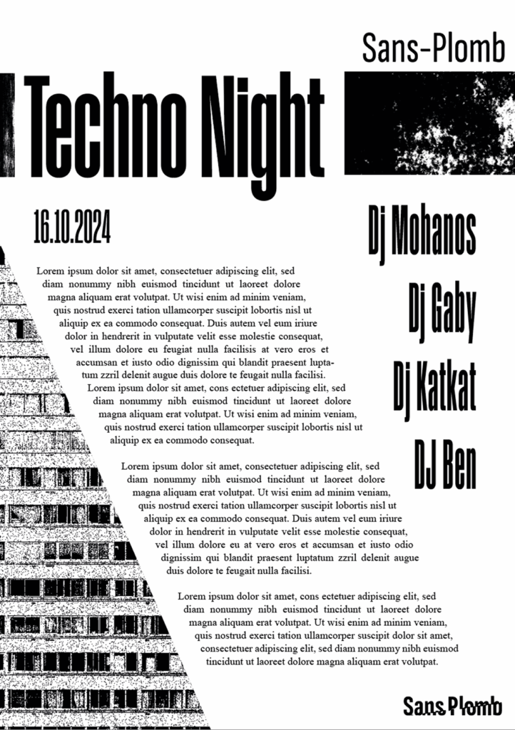 J’ai créer 4 affiches principales pour le projet Sans-Plomb. Le but est d’avoir plusieurs types d’affiches pour pouvoir varier les visuels. Les images et le texte vont variés selon les évènements qu’il y aura.